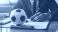 A businessman in a suit signing papers with a soccer ball nearby, representing the intersection of sports and business in a modern office setting during daylight hours. #884215347