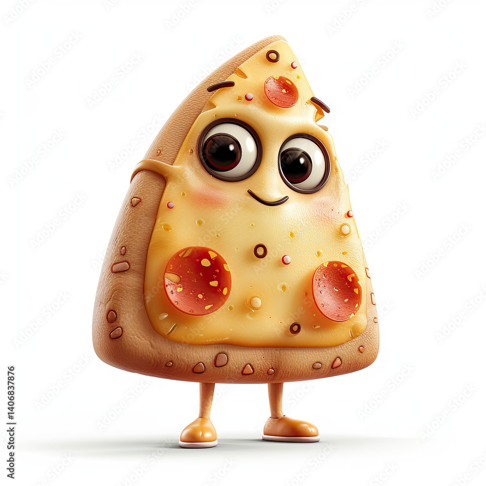 A cartoon pizza slice with large eyes, a smile, and pepperoni toppings. It's posed as if walking or standing. #1406837876