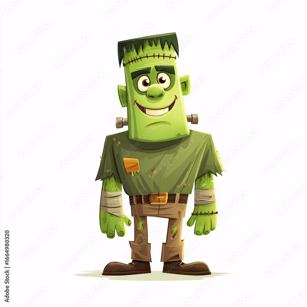 A cartoon version of Frankenstein’s monster with a friendly and cute design, perfect for Halloween-themed t-shirts. #1664980320