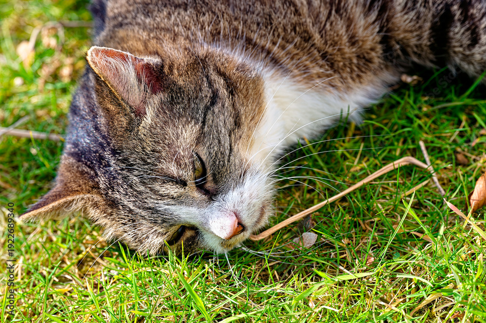 A cat enjoying the sunshine in the garden. #1922689340