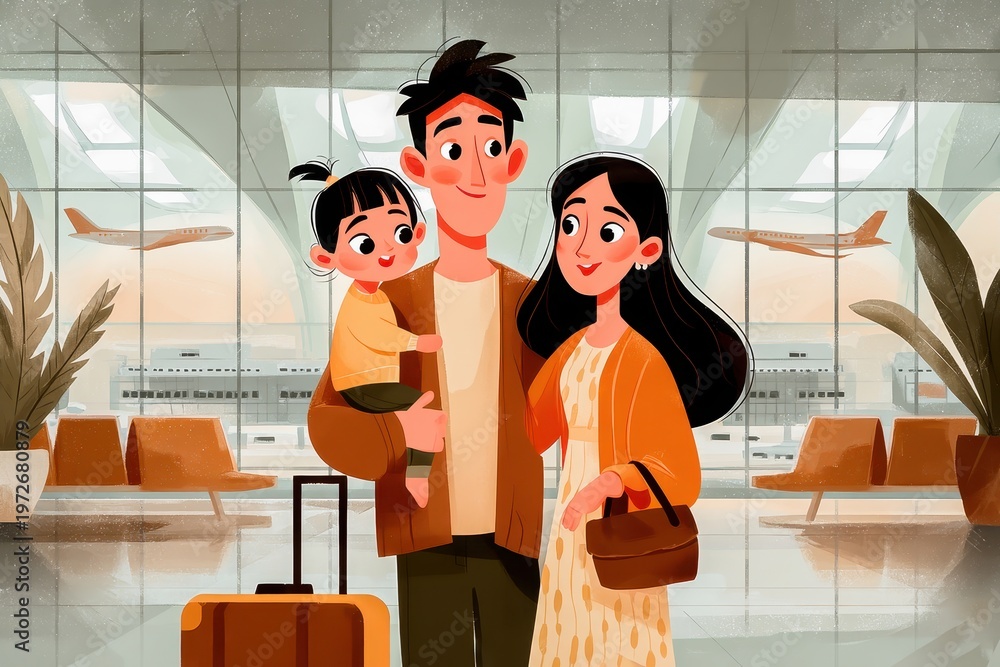 A cheerful family at the airport, ready to embark on their exciting travel adventure together. #1972680879