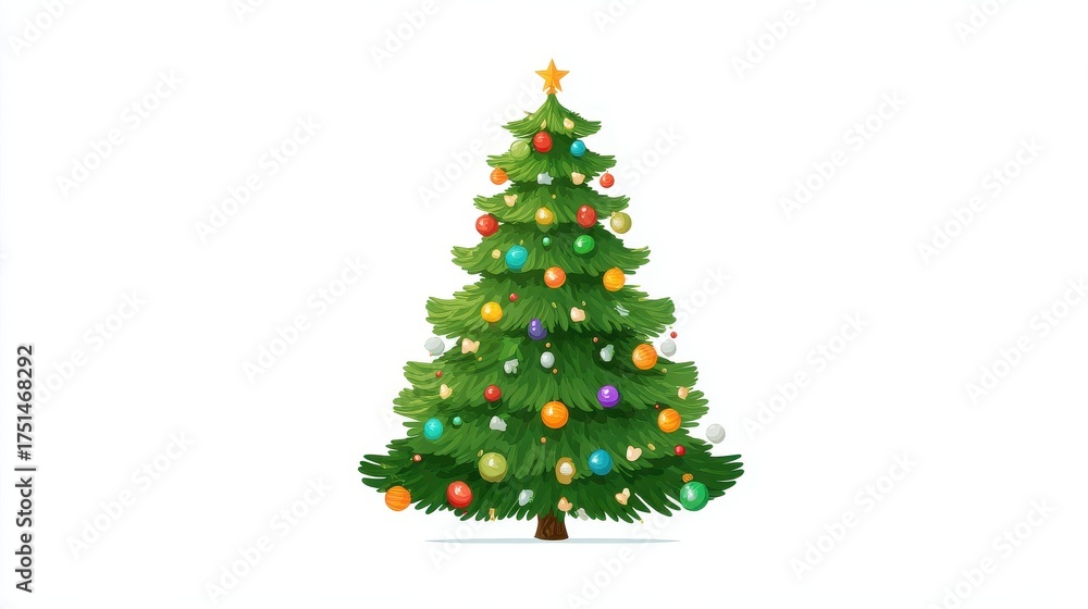 A Christmas tree, festive element, flat vector design, bright green with colorful baubles, isolated on white background. #1751468292