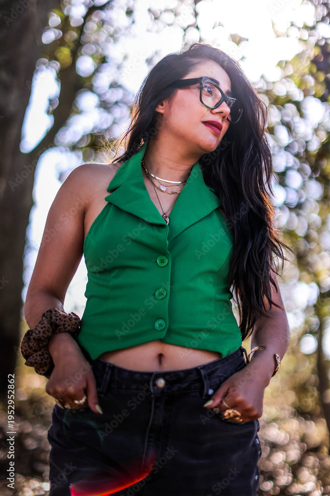 A close up head shot portrait of a preppy, young, beautiful, confident and attractive Mexican woman. Enjoying her happy life. Happy young girl #1952952862
