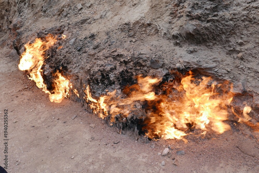 A close up view of the eternal natural gas fire at Yanar Dag on the Absheron Peninsula near Baku Azerbaijan showcasing a unique geological phenomenon #1940255362