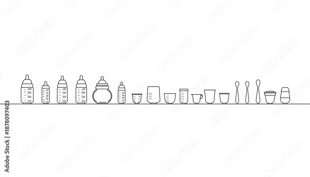 A collection of baby bottles and cups on a shelf #1878097403