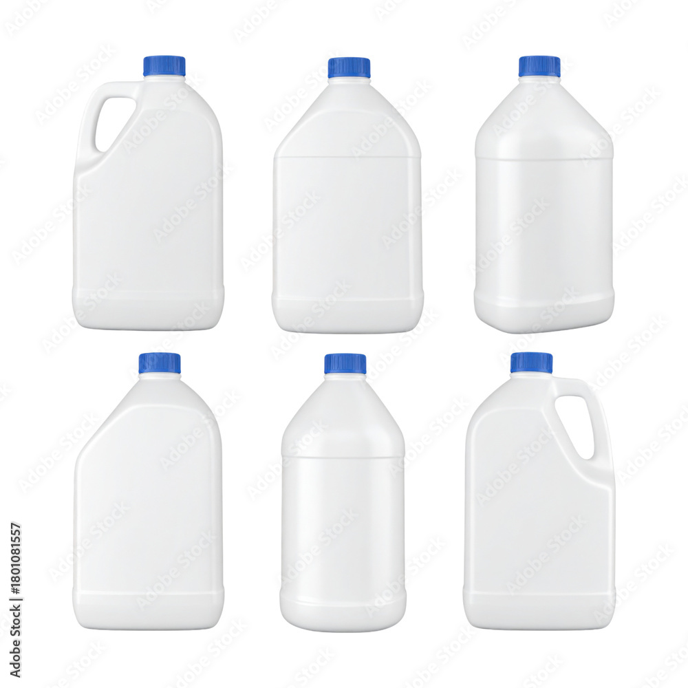 A collection of 3D blank plastic milk jugs, isolated on transparent background, PNG #1801081557