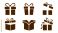 A collection of six black silhouette gift box icons showing various stages of opening. #1935145149