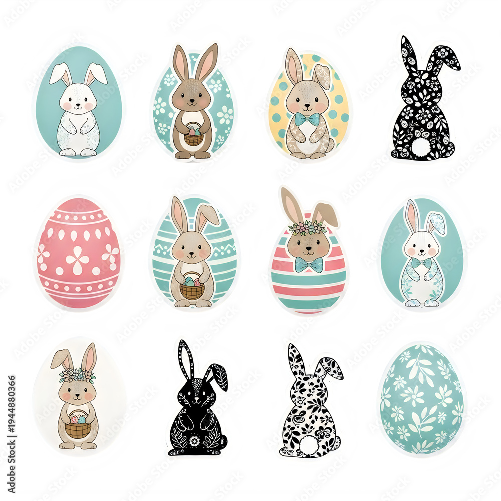 A collection of various cute animals and objects in circular frames isolated on transparent background #1944880366