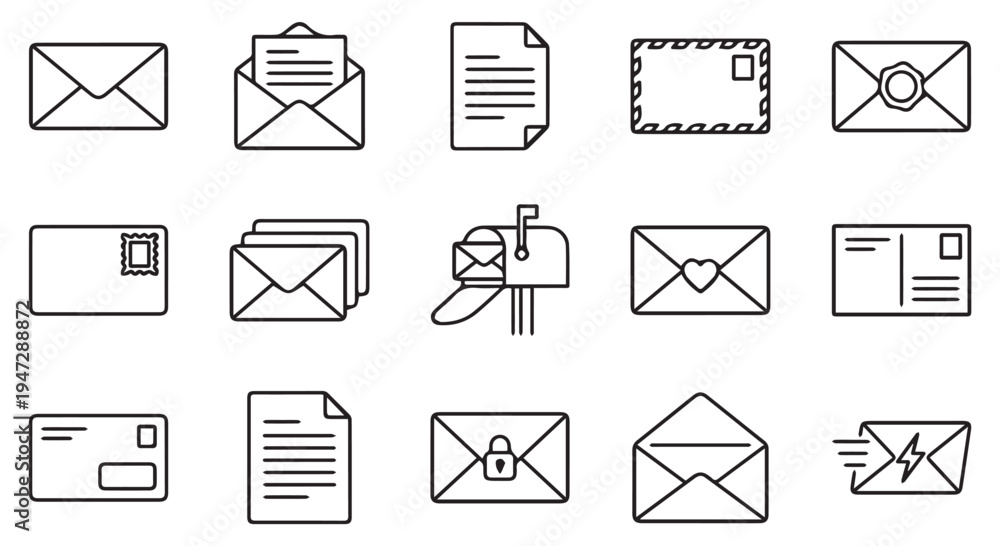 A collection of various email and mail icons on a Transparent Background #1947288872
