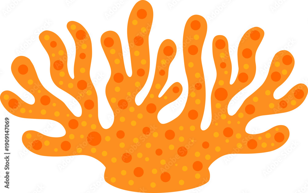 A colorful brush painting of an abstract coral reef segment, featuring bright orange hues and speckled details, perfect for marine-themed graphic design #1909147069