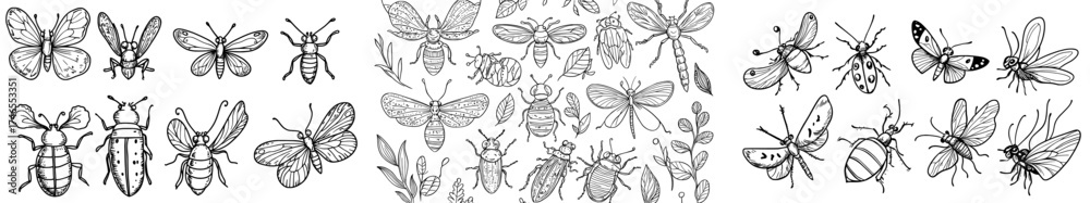 A coloring game featuring cartoon insects allows kids to paint and draw cute insects, including funny bugs, worms, and caterpillars, for an educational experience #1746553351