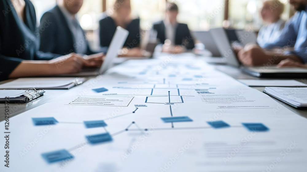 A company’s corporate governance structure visualized with flowcharts, board members, and decision-making processes #1262908722