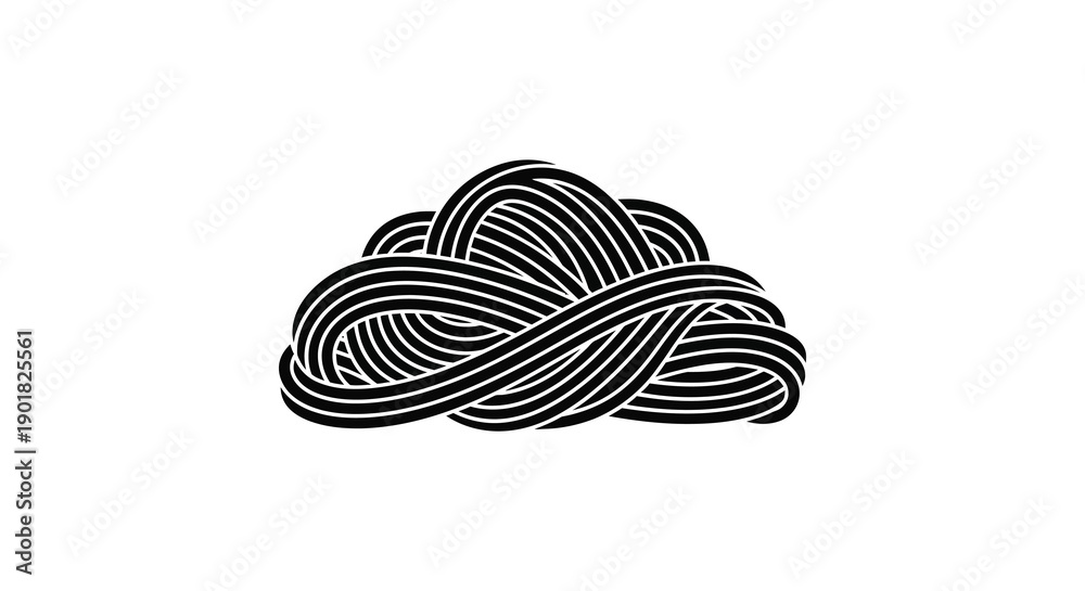 A complex abstract illustration depicts a tightly woven swirling knot of black lines on a white background #1901825561
