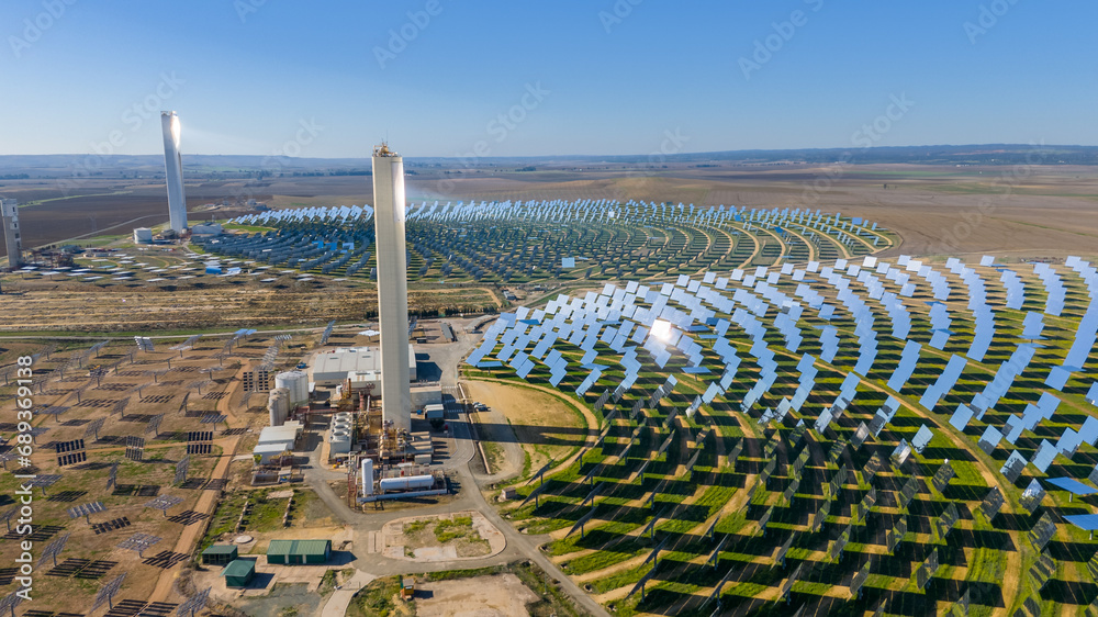 A concentrating solar power tower plant operating near Sevilla, Andalusia, Spain #689369138