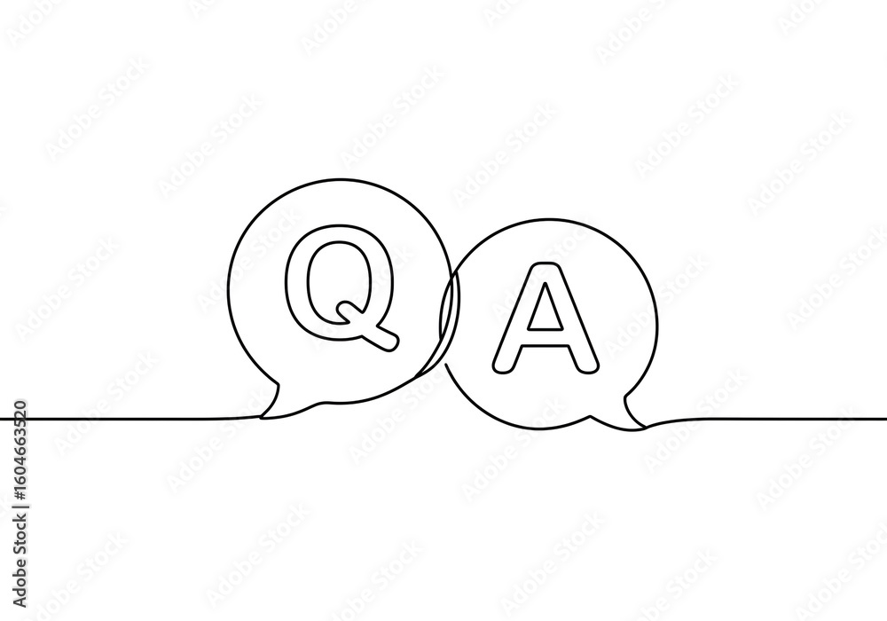 A continuous line drawing of two overlapping speech bubbles with the letters q and a inside #1604663520
