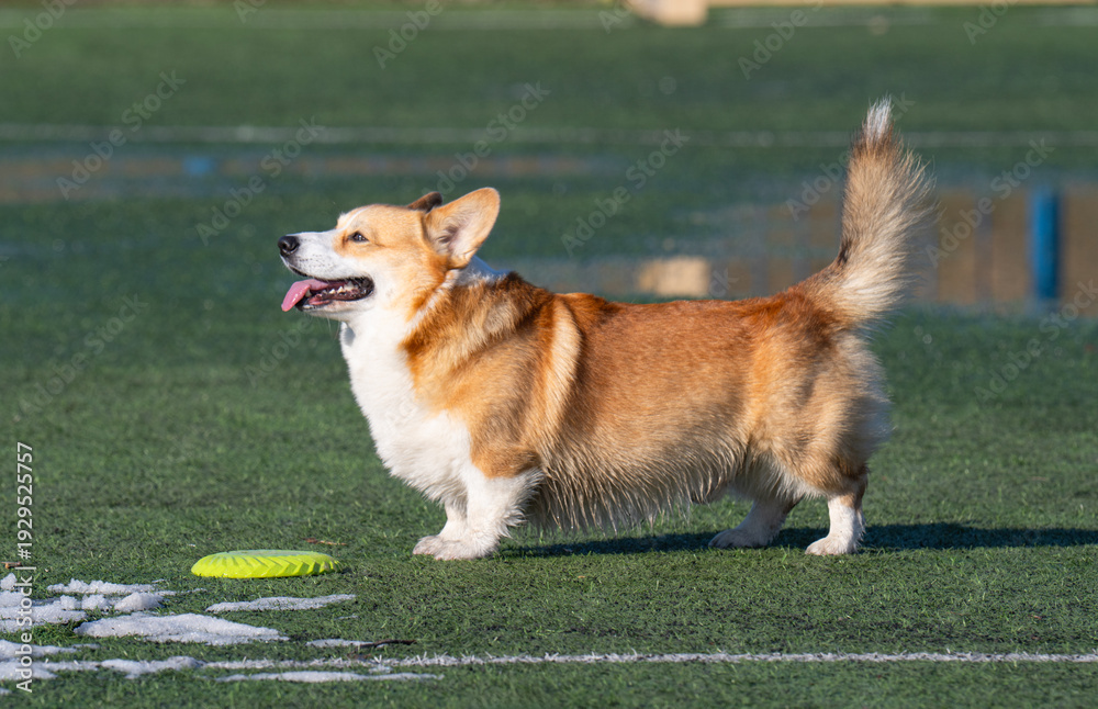 A corgi plays with a frisbee #1929525757