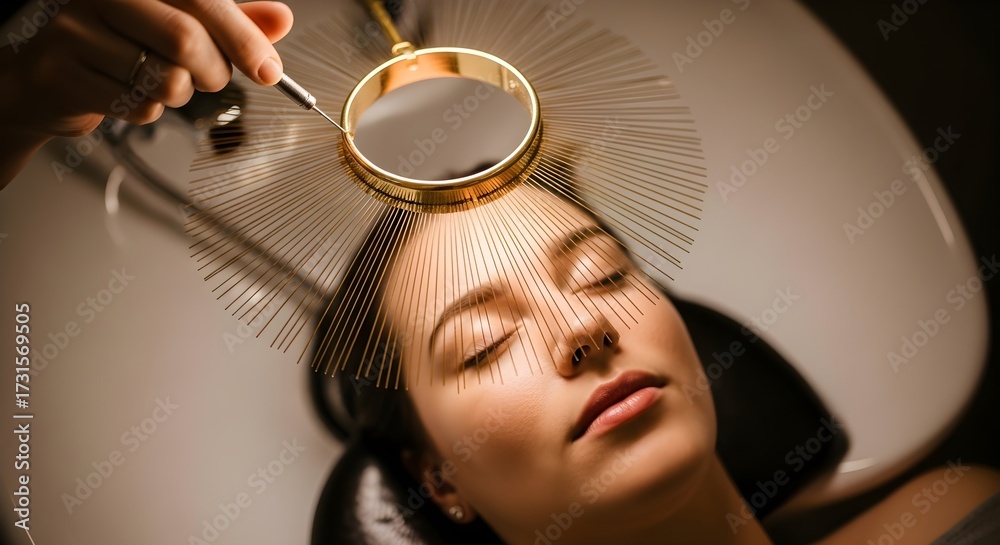 A cosmetology procedure Examining the scalp of a woman with a specialized magnifying tool for hair and scalp diagnosis in the salon #1731569505