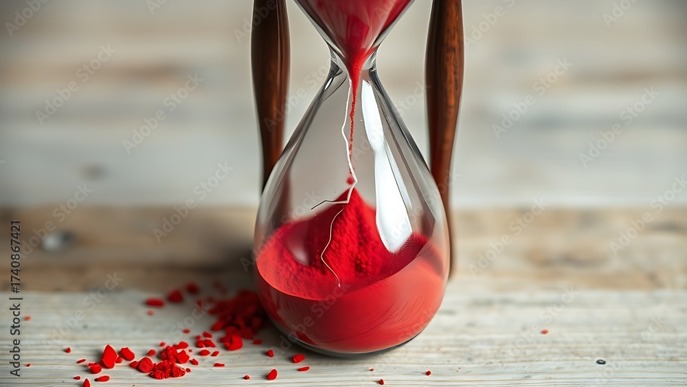 A cracked hourglass with red sand, symbolizing urgent health warnings in midlife. #1740867421