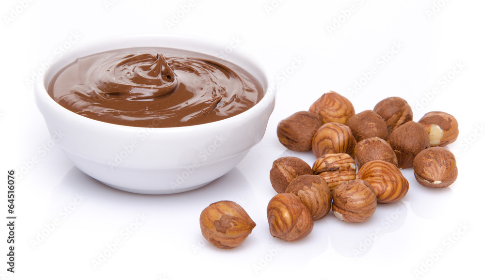 A cup of chocolate hazelnut spread with hazelnuts #64516076