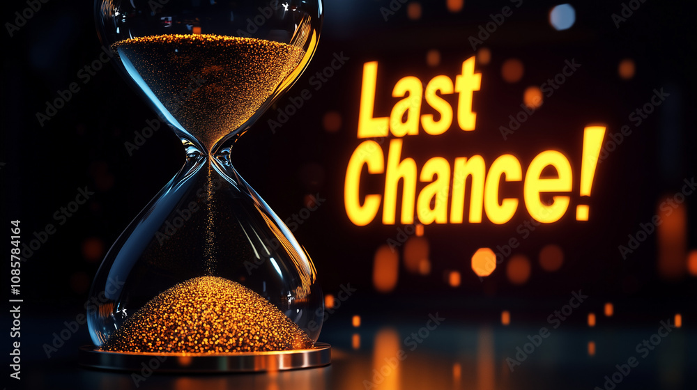 A 3D hourglass, limited offer, Last Chance, black bokeh background #1085784164