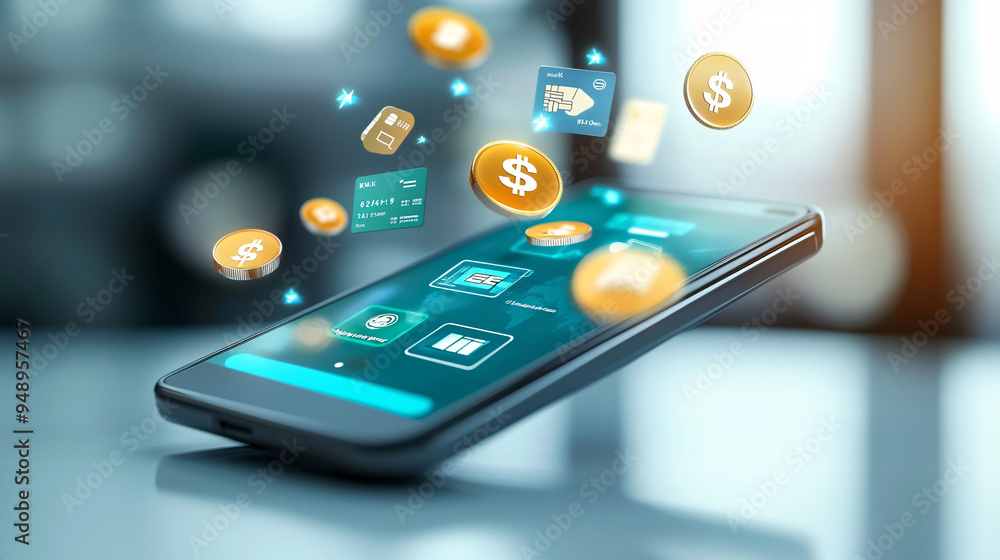 A 3D mobile wallet with floating transaction icons, representing the convenience and functionality of digital payment systems #948957467
