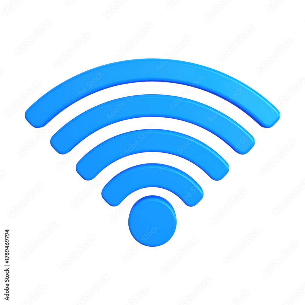A 3D Wifi signal icon, blue concentric arcs, 3D render, isolated on transparent background, PNG #1789469794