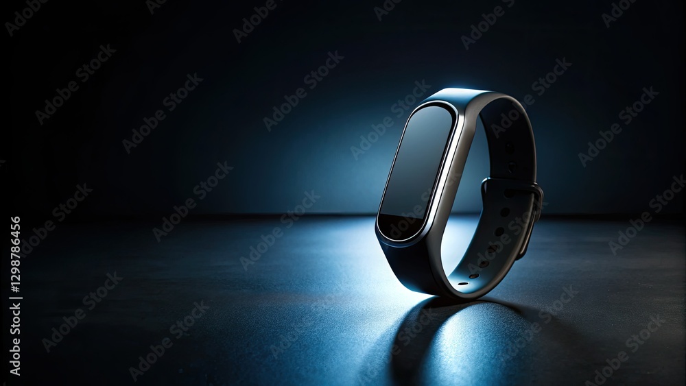 A dark silhouette: minimalist fitness tracker. This health tech smartwatch monitors activity and workouts. #1298786456