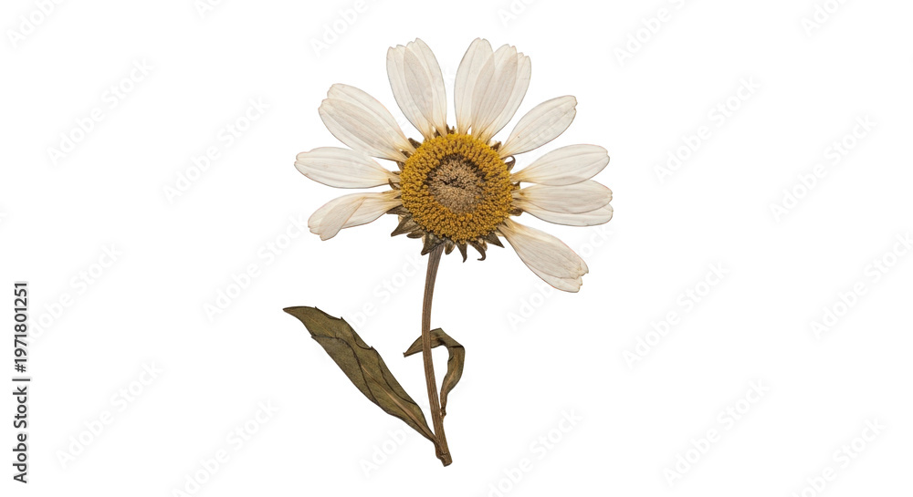 A delicate daisy flower with white petals and a yellow center isolated on transparent background #1971801251