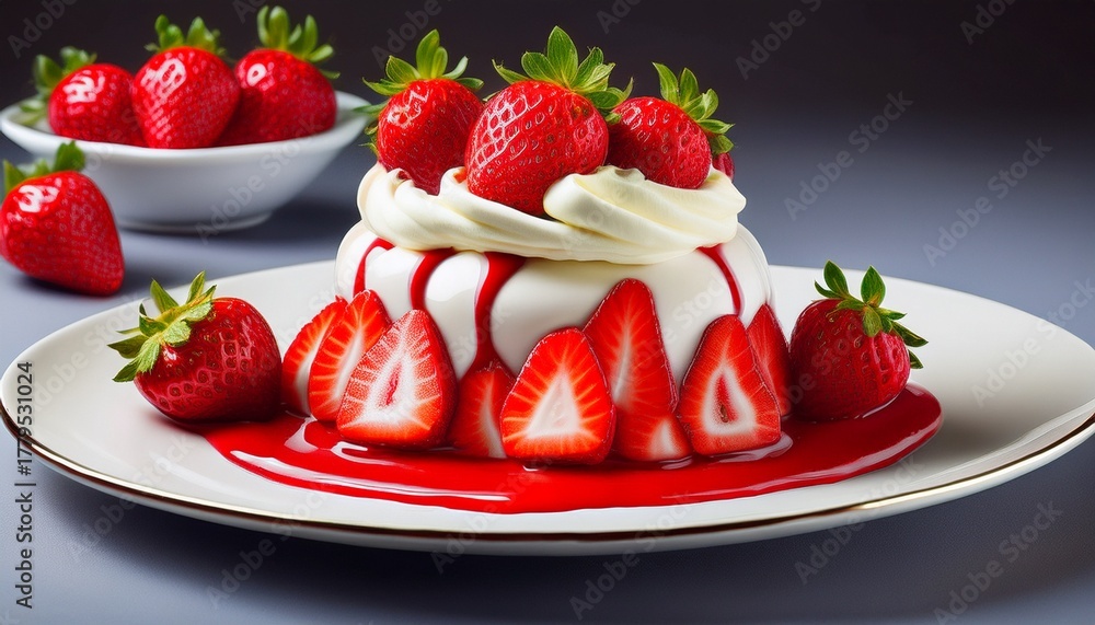 a dessert with strawberries and cream is on a white plate next to whole strawberries strawberry dessert fresh ingredients delicious treat #1779531024
