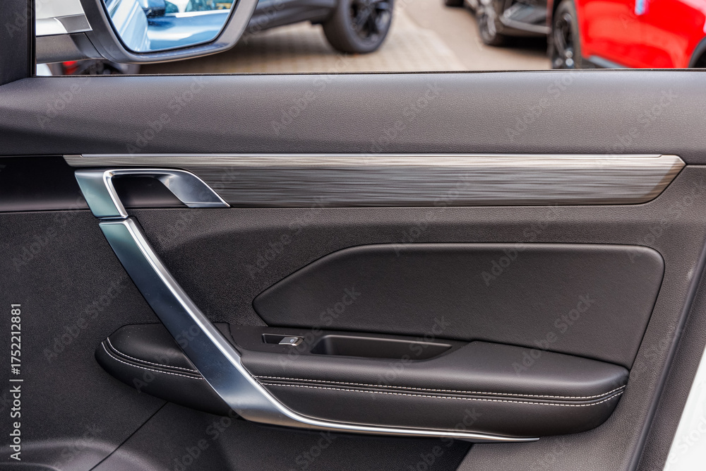 A detailed close-up of a modern vehicle's interior door panel #1752212881