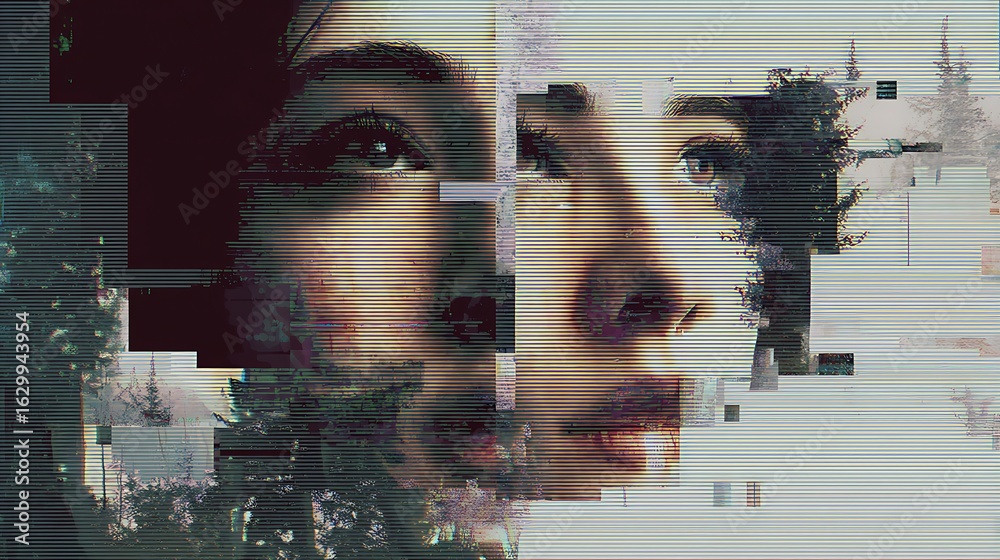 A digital photo album where half the images are missing or corrupted, surreal composition, glitch art meets melancholy, fading pixels and broken edges, #1629943954