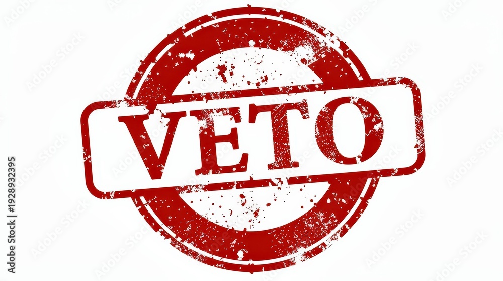 A distressed red stamp with the word "VETO" in capital letters, symbolizing rejection, denial, or prohibition. #1928932395