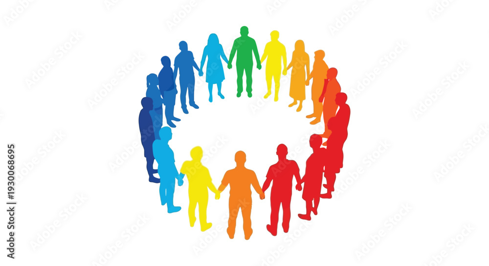 A diverse group of people holding hands in a colorful circle representing unity and community silhouette high quality #1930068695