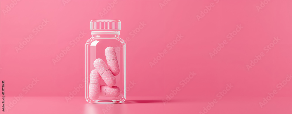 A drawn bottle of pharmaceutical capsules on a colored background #1958720155