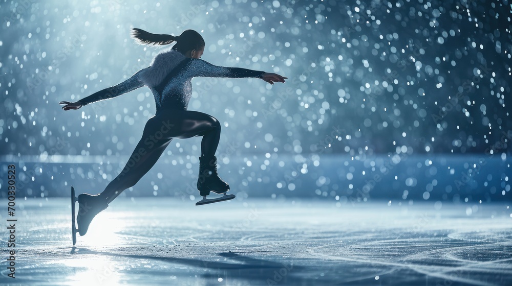 A figure skater executing a perfect jump, capturing grace and athleticism. #700330523