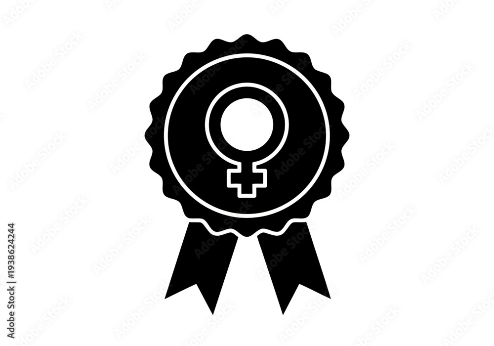 A fine black and white female symbol on perfect ribbon badge silhouette for gender equality and female empowerment #1938624244