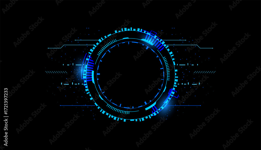A glowing circle with digital patterns and elements, ideal for technology-themed design projects. #1721397233