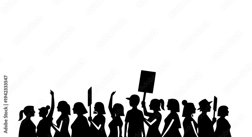 A group of people protesting with signs and banners in a demonstration. #1942333547