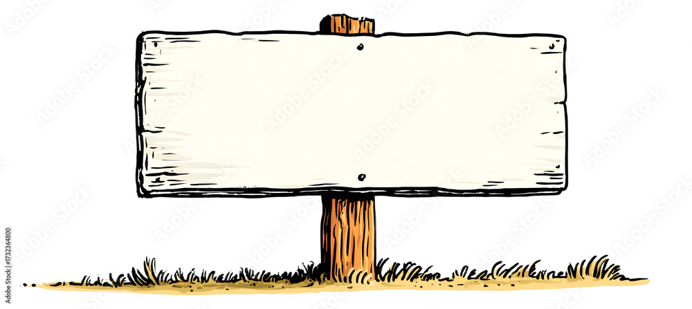 A hand-drawn sign stands proudly on a wooden post, surrounded by grass, inviting viewers to fill the blank space with their message. #1732364800