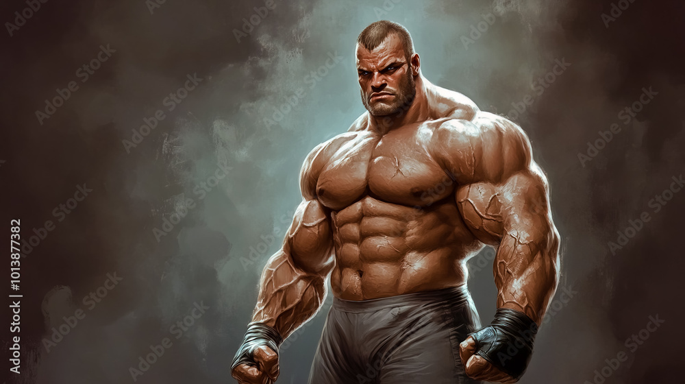A huge muscled wrestler on steroids, ready-for-combat stance. #1013877382