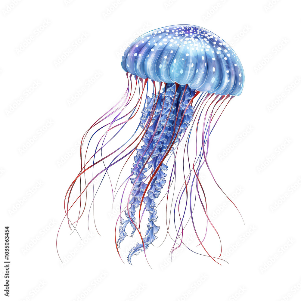 a jellyfish with long tentacles. Illustration, on transparent background png file #1035063454