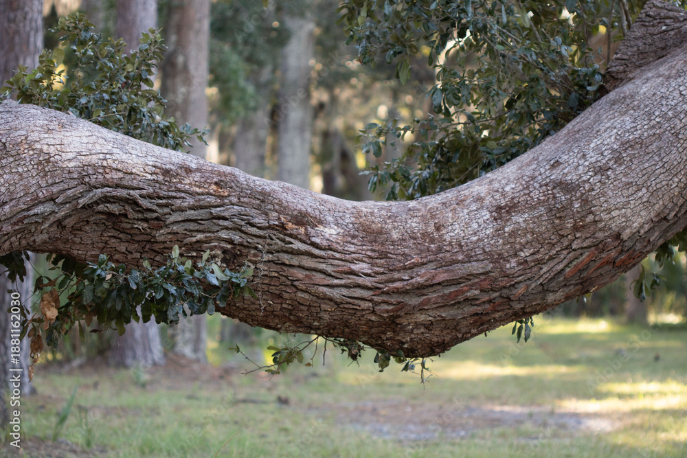 • #1881162030 A large branch from a tree in a park; tree at Fort McAllister State Park in Richmond Hill, GA near Savannah