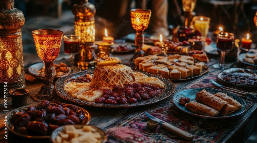 A Lavish Middle Eastern Feast With Sweets And Drinks #1907123194
