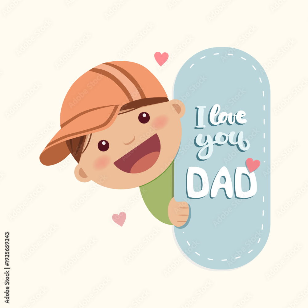 A little boy peeks behind a message with the text I love you dad. Fathers Day #1925659243