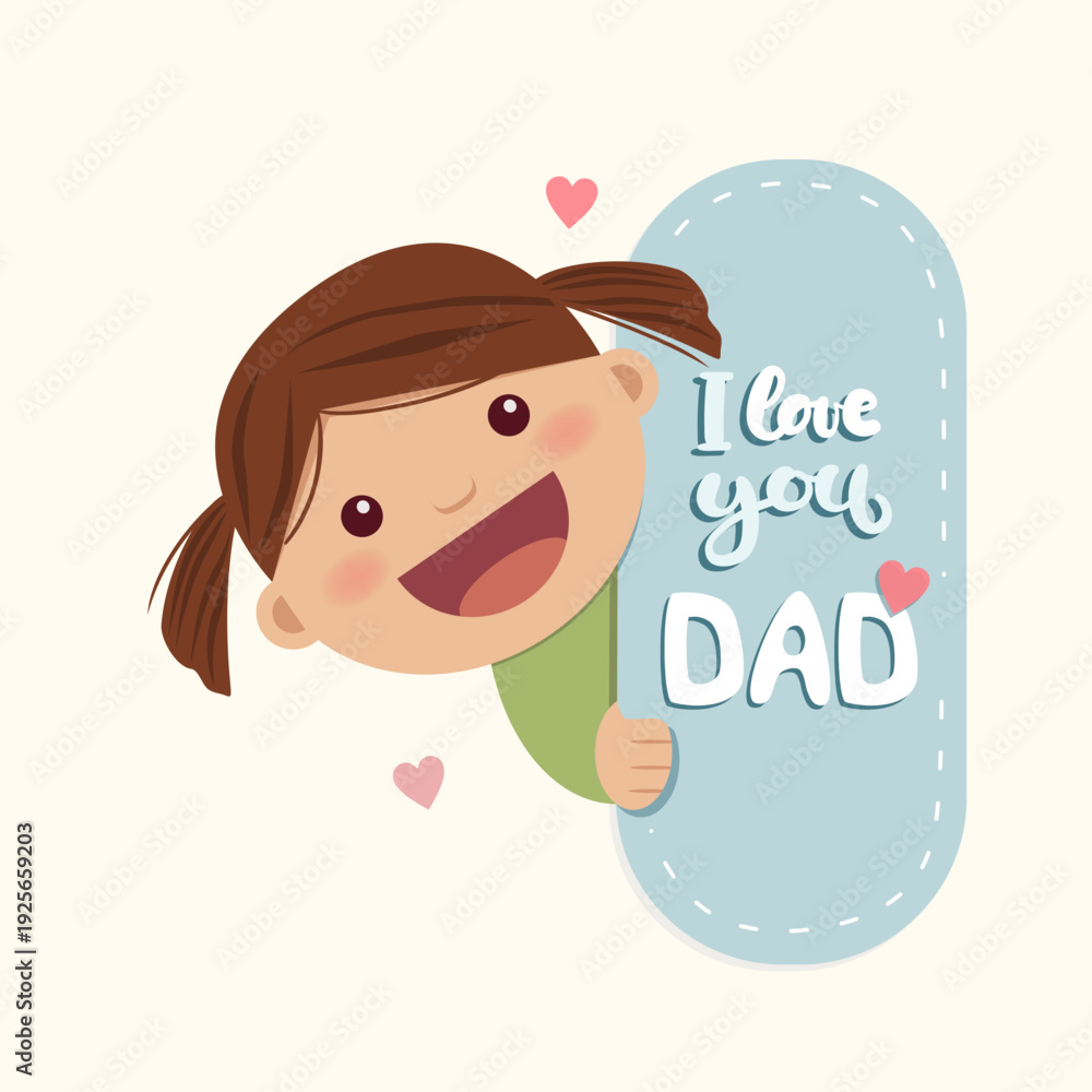 A little girl peeks behind a message with the text I love you dad. Fathers Day #1925659203