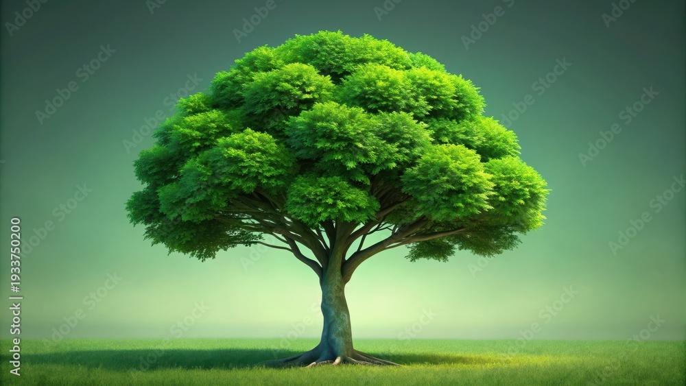 A lone tree stands out against its lush surroundings, its single branch displaying vibrant green foliage amidst a sea of life and growth #1933750200