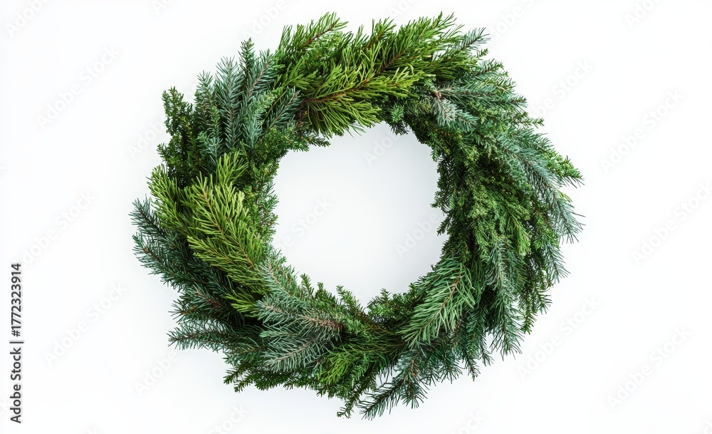 A lush green wreath made from evergreen foliage, perfect for decoration during festive seasons or as a home accent. #1772323914