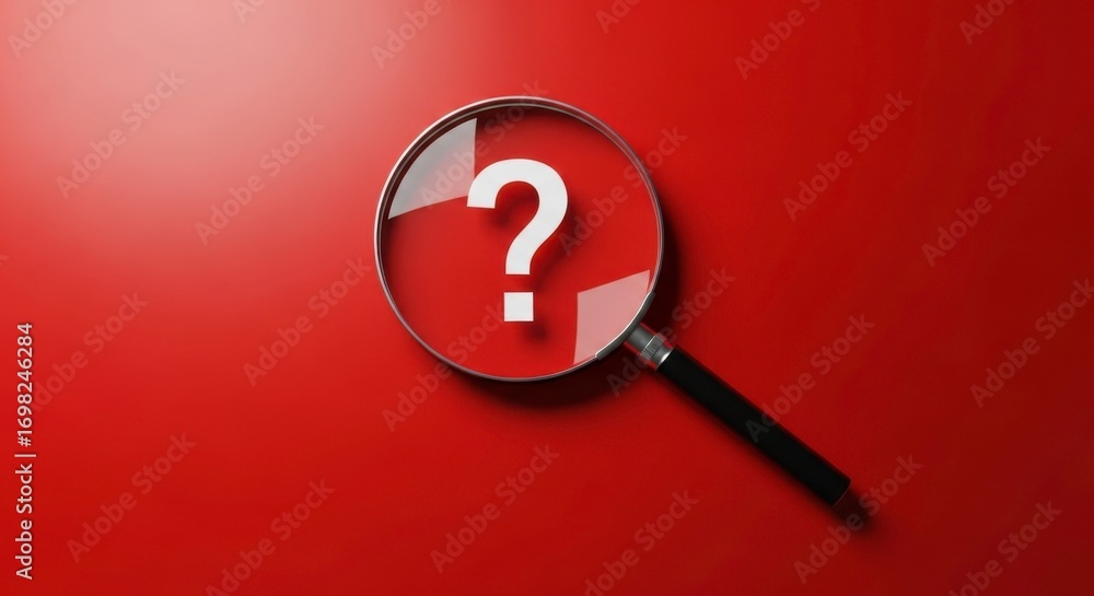 A magnifying glass focusing on a question mark symbol against a red background view #1698246284