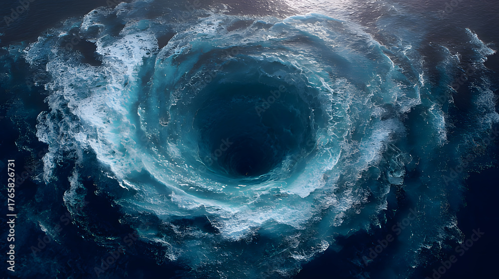 A mesmerizing inverted whirlpool of ocean water defying gravity, revealing the terrifying abyss beneath. #1765826731