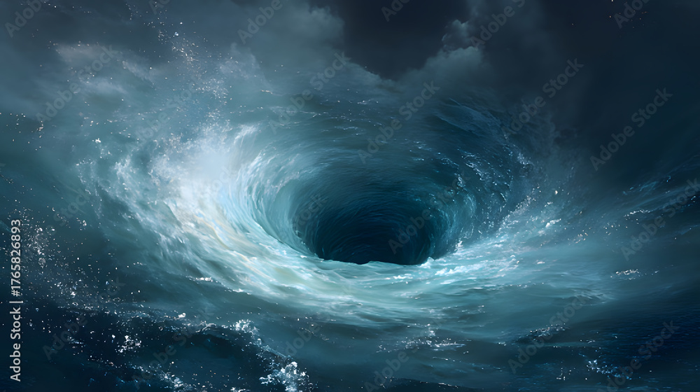 A mesmerizing inverted whirlpool of ocean water defying gravity, revealing the terrifying abyss beneath. #1765826893